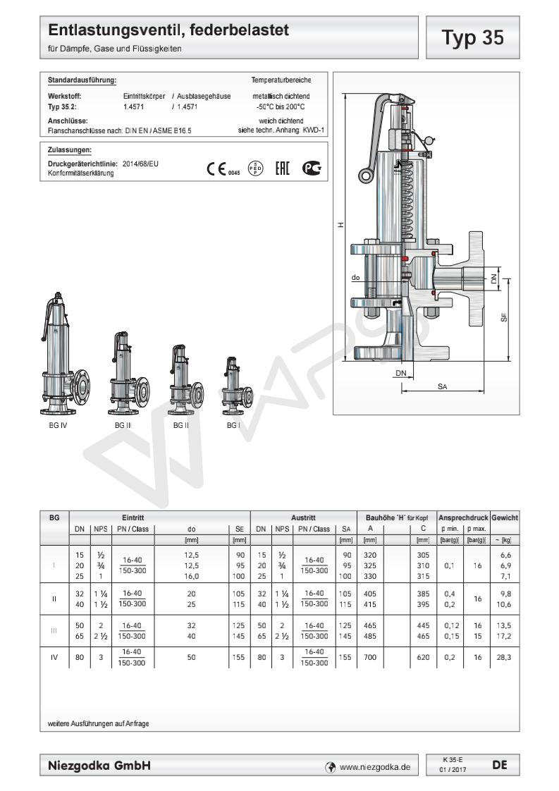衛生級法蘭安全溢流閥、衛生級安全溢流閥 Typ 35