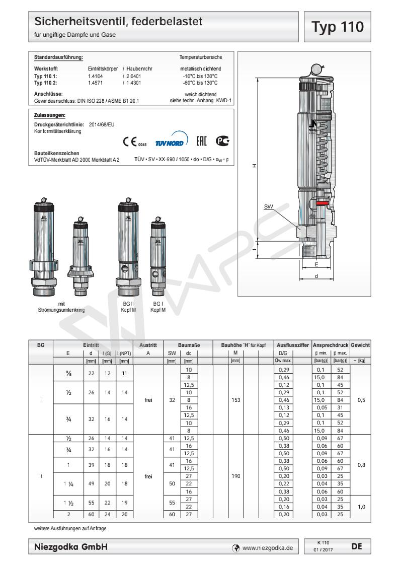 | Typ 110 德國Niezgodka 安全閥、減壓閥、溢流閥 |