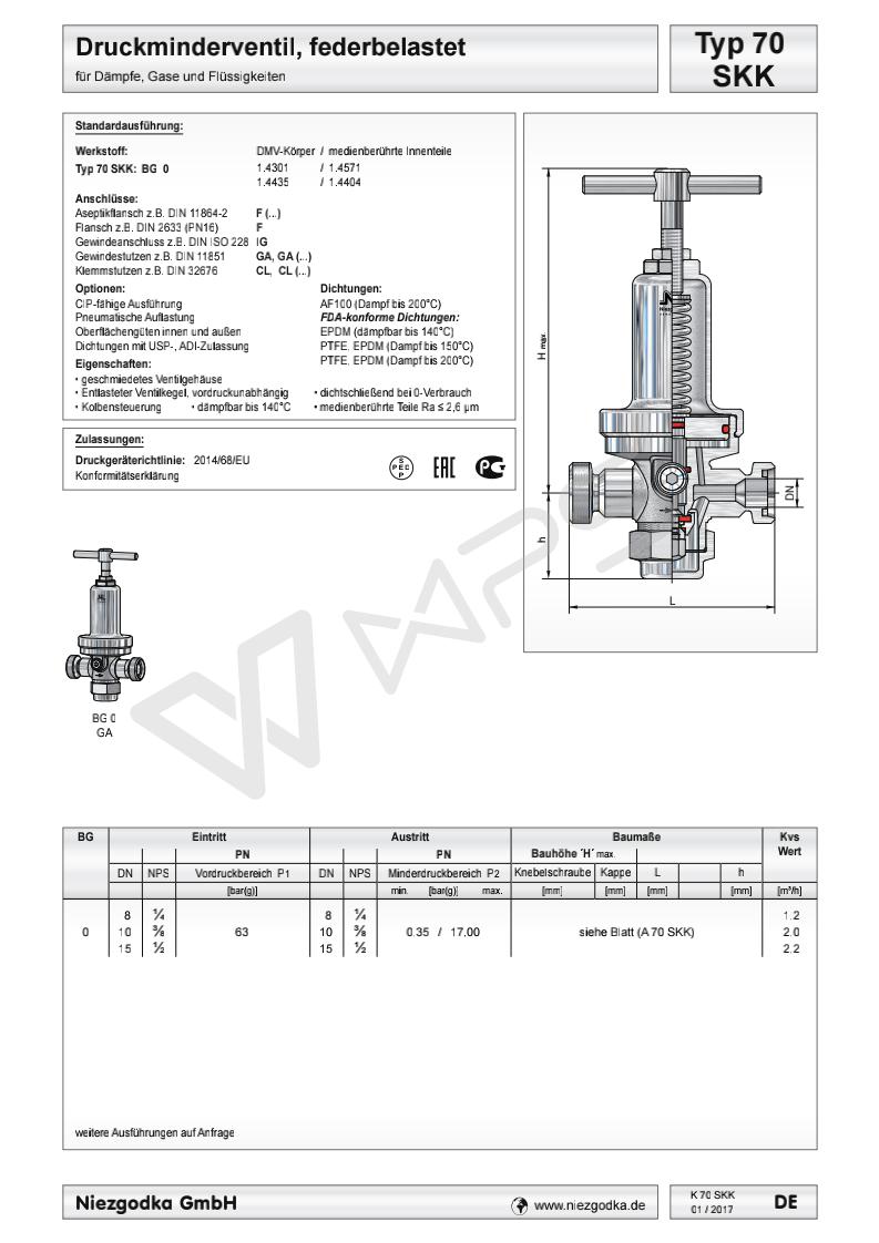 德國Niezgodka原裝進口衛生級減壓閥 Typ 70 SKK