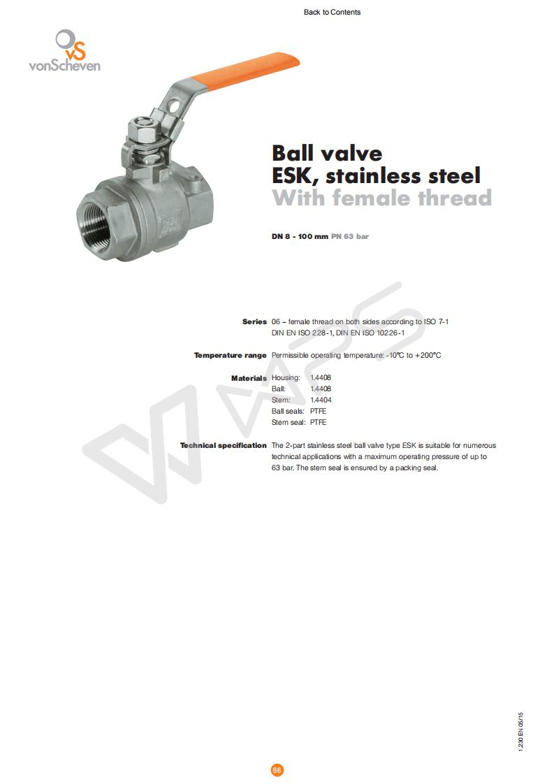 內螺紋不銹鋼球閥ESK的技術文件