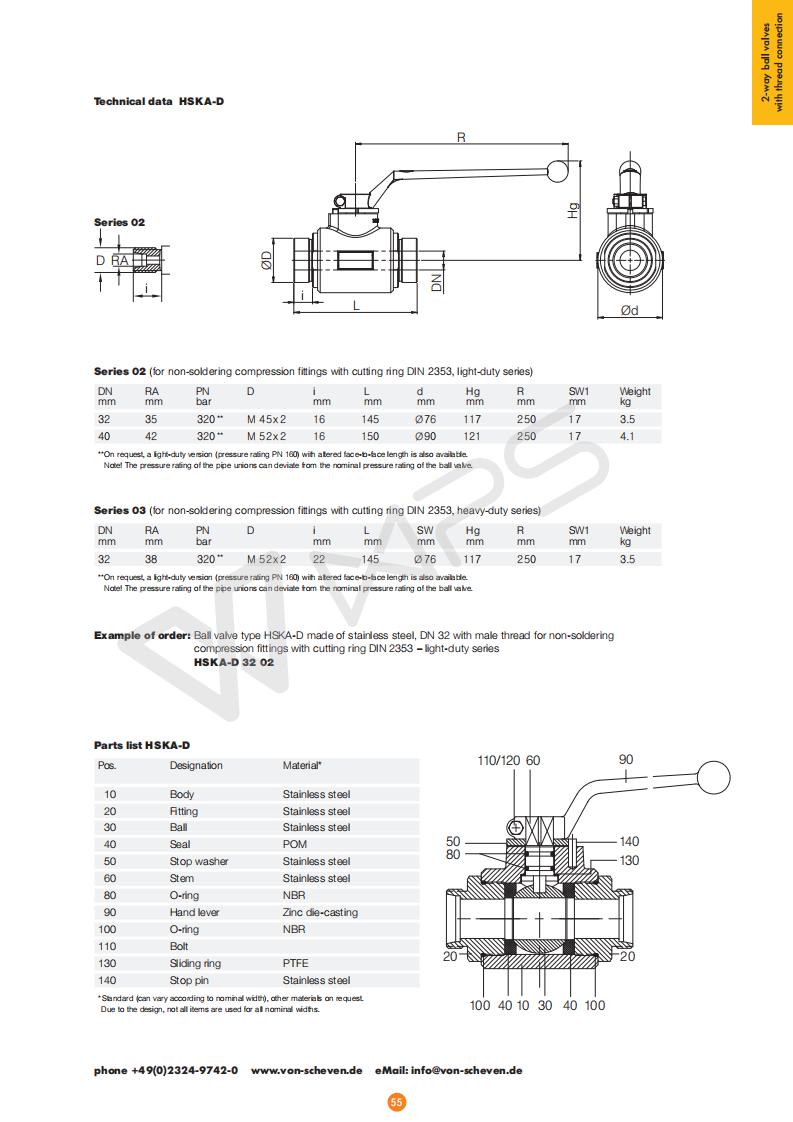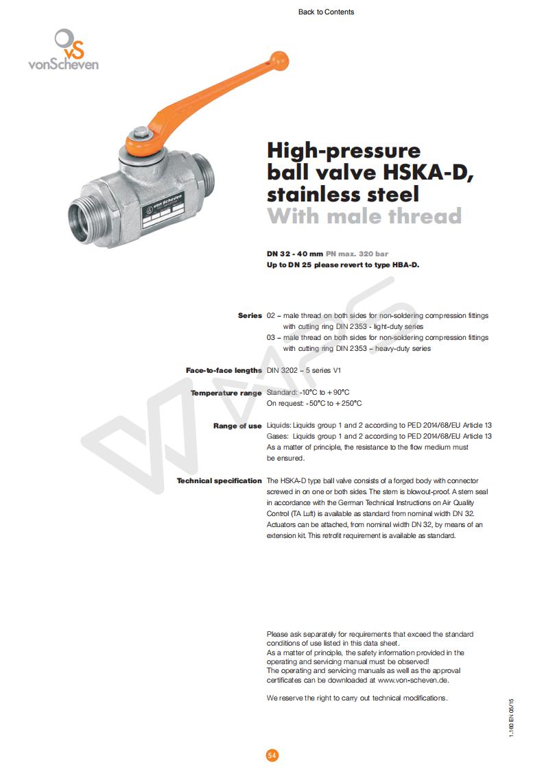 | 外螺紋不銹鋼高壓球閥HSKA-D的各項技術參數 |