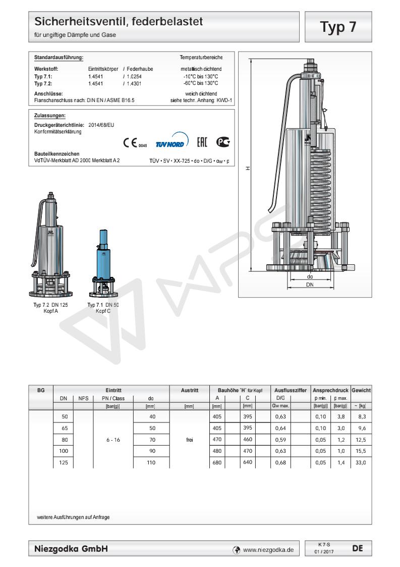 | Typ 7 德國(guó)Niezgodka進(jìn)口法蘭安全溢流閥 |