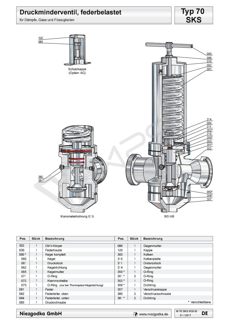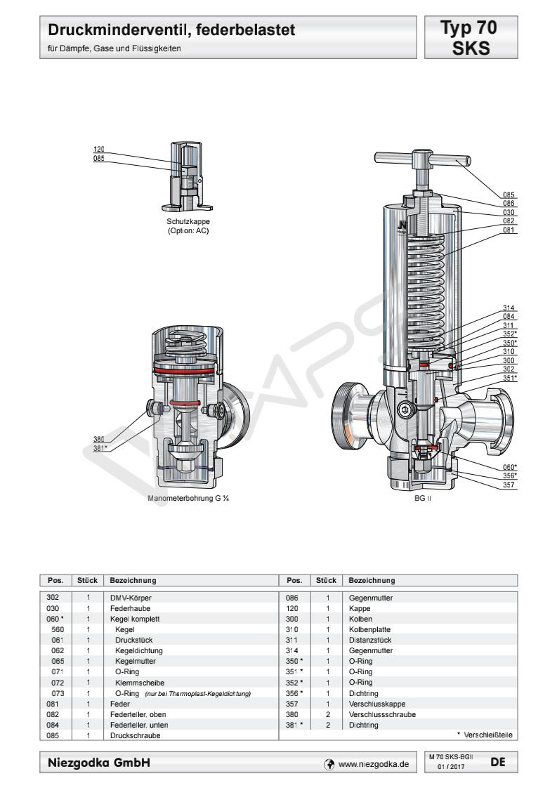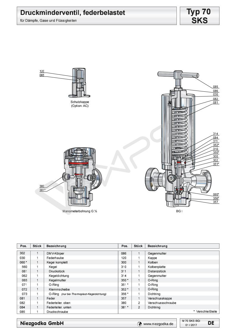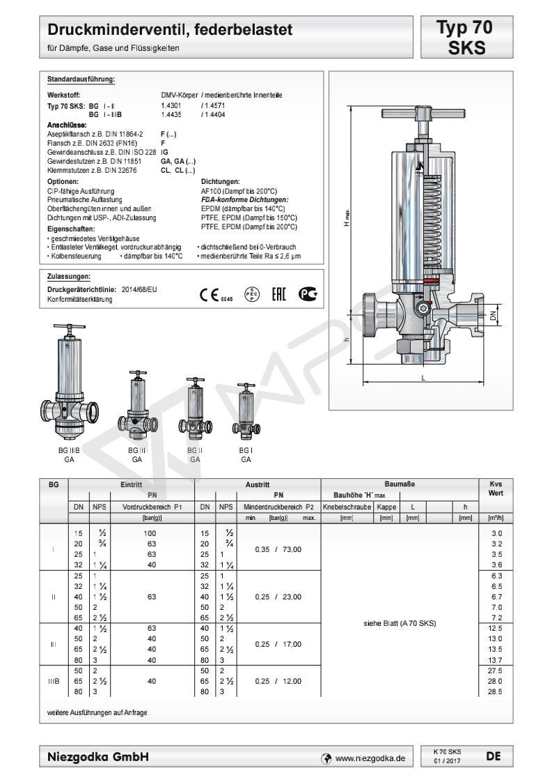德國進口衛生級減壓閥的各項技術參數指標 Typ 70 SKS