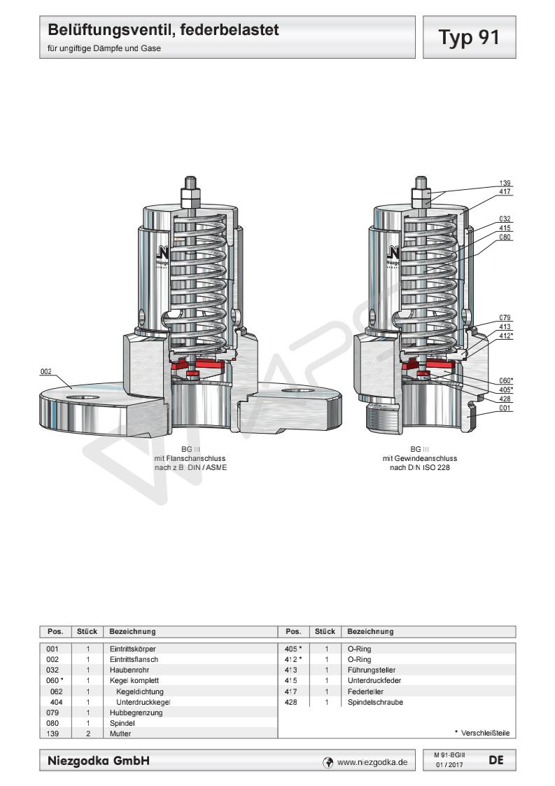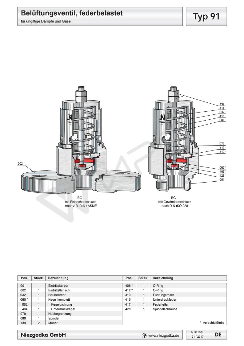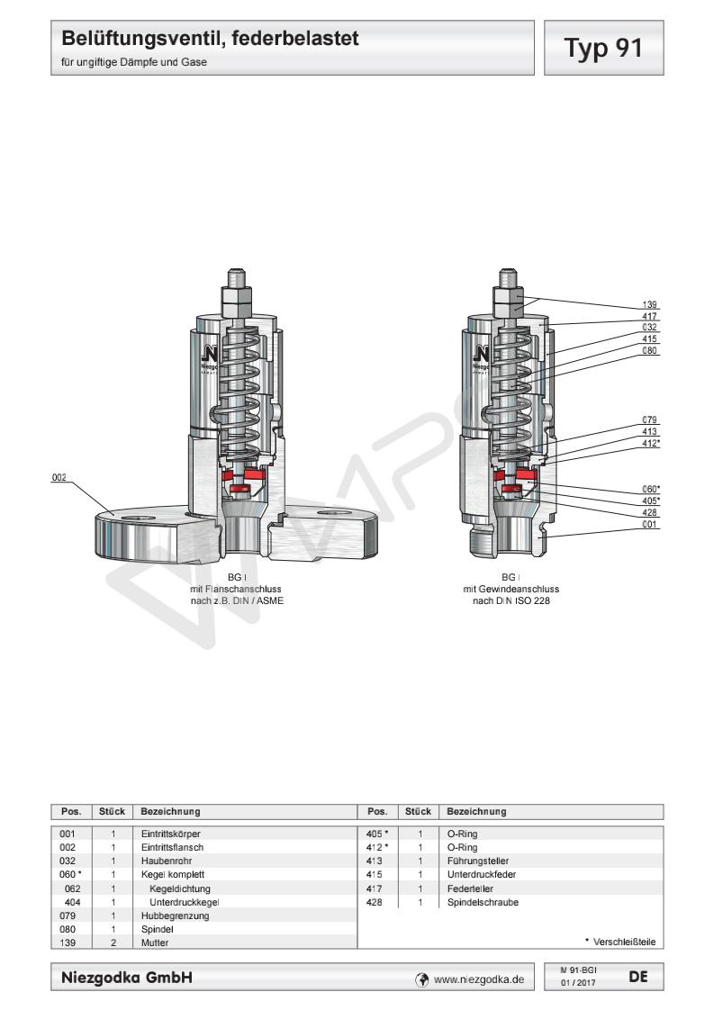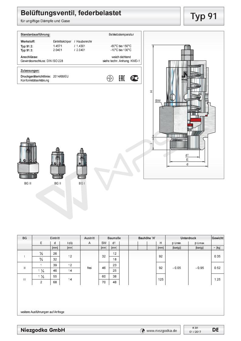 德國Niezgodka進口真空安全溢流閥 Typ 91