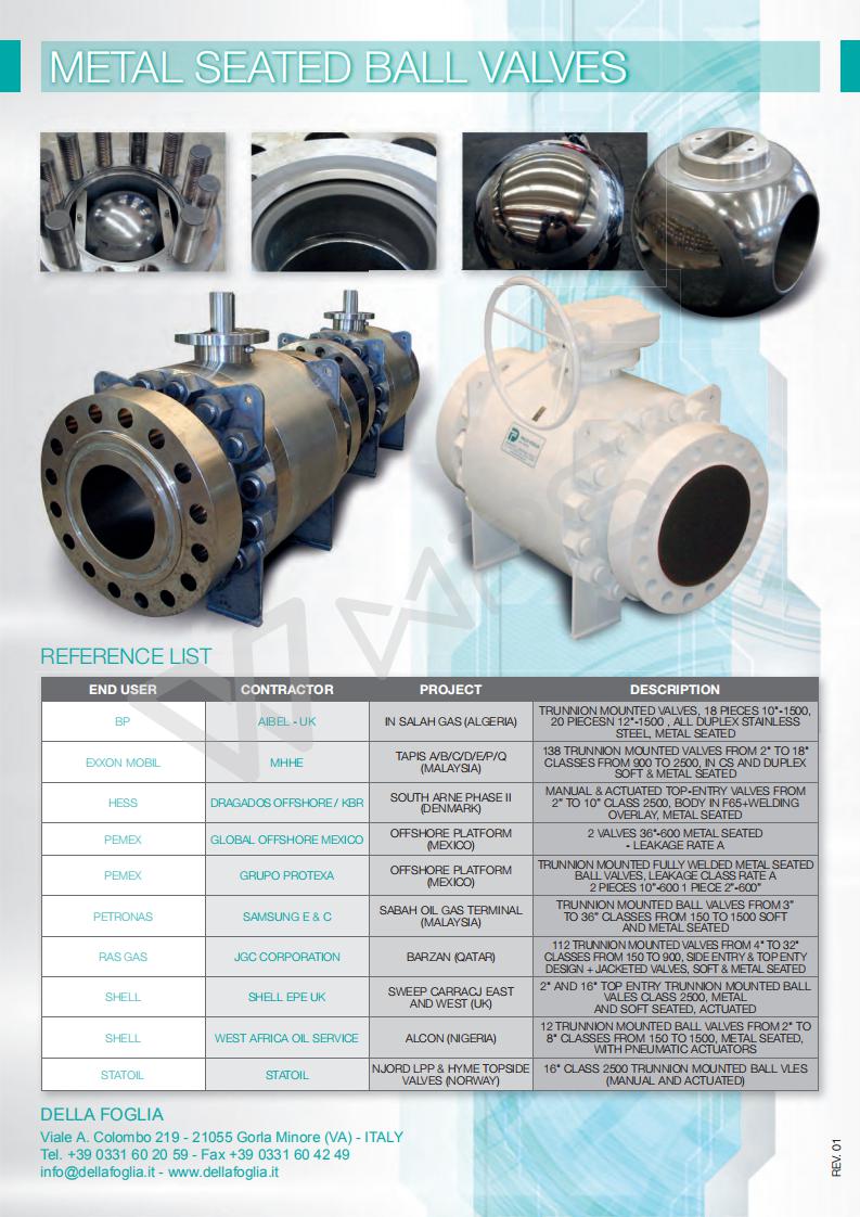 | 意大利DELLA FOGLIA金屬硬密封球閥的技術參數 |