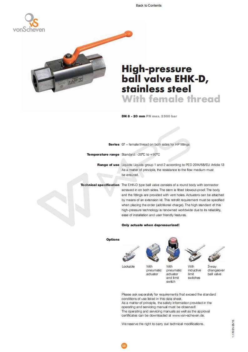 | 內螺紋不銹鋼高壓球閥EHK-D |