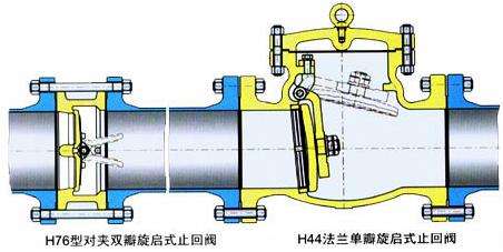 對夾式止回閥是一種通用單向流體閥門。對夾式止回閥重量輕,體積小,容易安裝在法蘭之間,閥門內(nèi)部由兩個半圓彈簧和板面組成,用銷子固定在閥體上彈簧形變使閥板關(guān)閉,流體壓力又使其開啟彈簧的形變很快,這樣能保護管道免受水錘破壞。